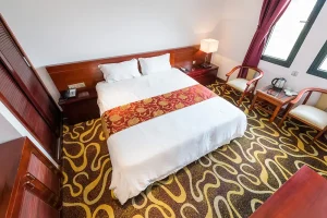 Khách sạn Hoàng Trung mang đến sự kết hợp hài hòa giữa phong cách nội thất hiện đại châu Âu và nét văn hóa địa phương độc đáo. Mỗi căn phòng tại đây đều được thiết kế để hòa mình vào cảnh sắc thiên nhiên Cô Tô thơ mộng.